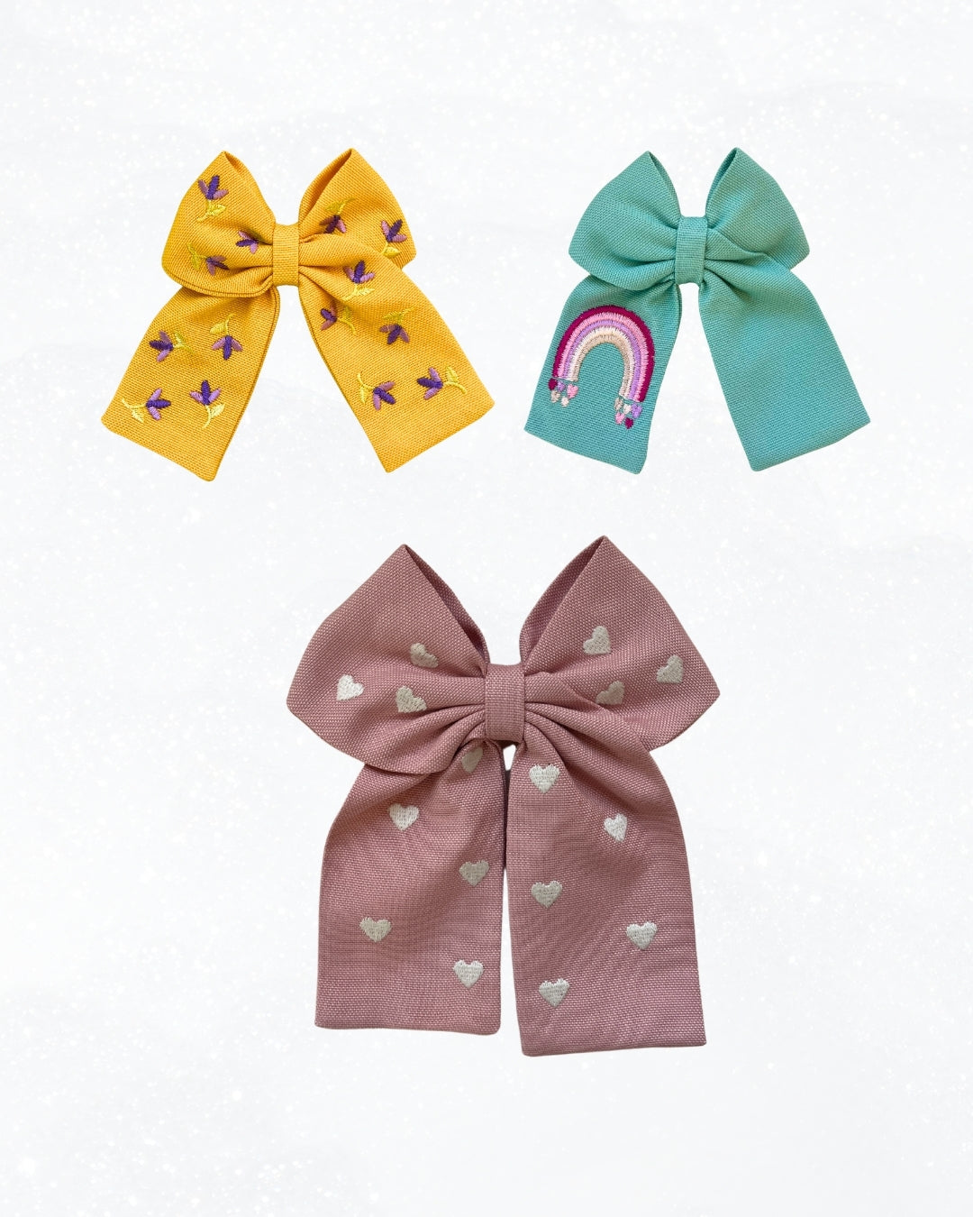 Set içerisinde 3 adet nakışlı fiyonk toka bulunmaktadır.