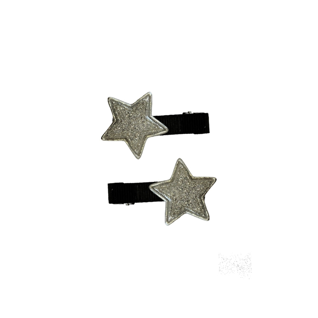 Set içerisinde 2 adet gümüş yıldız çıt çıt toka vardır.