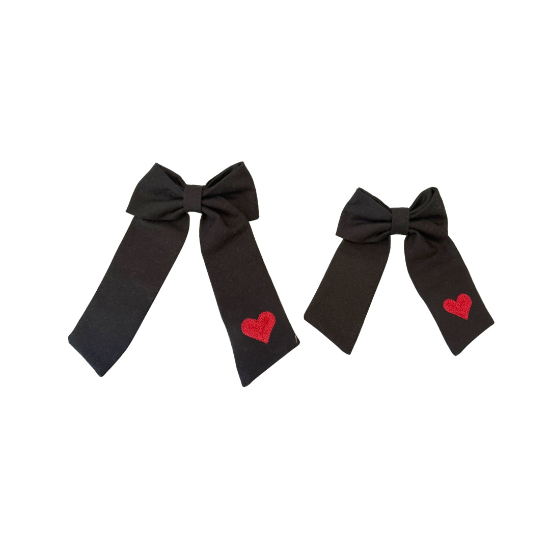 Kalp Nakışlı Siyah Anne-Kız Tokası