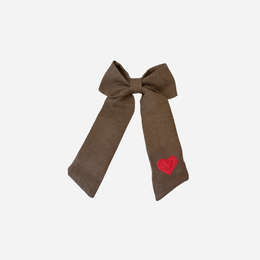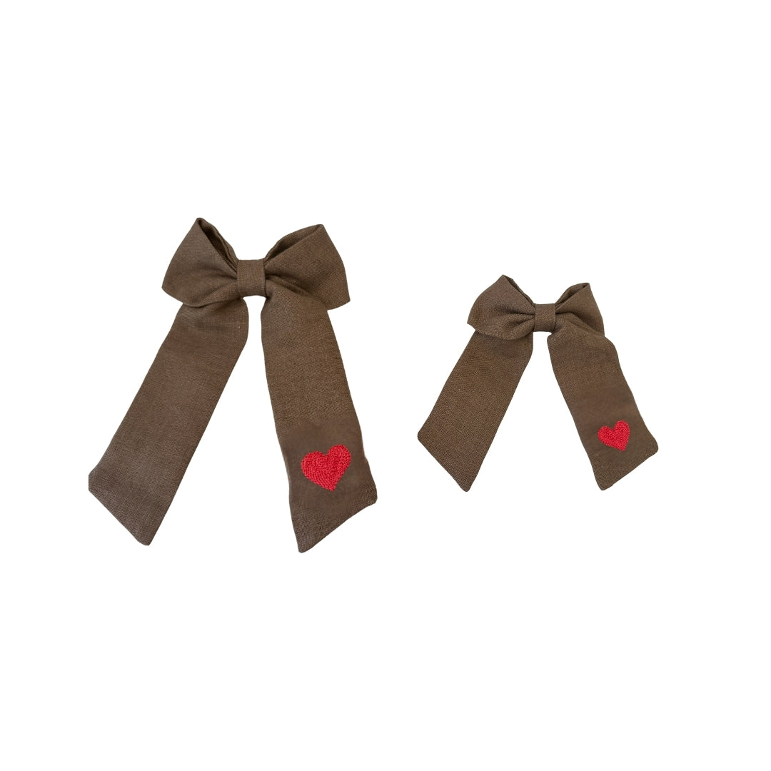 Kalp Nakışlı Kahverengi Anne-Kız Tokası