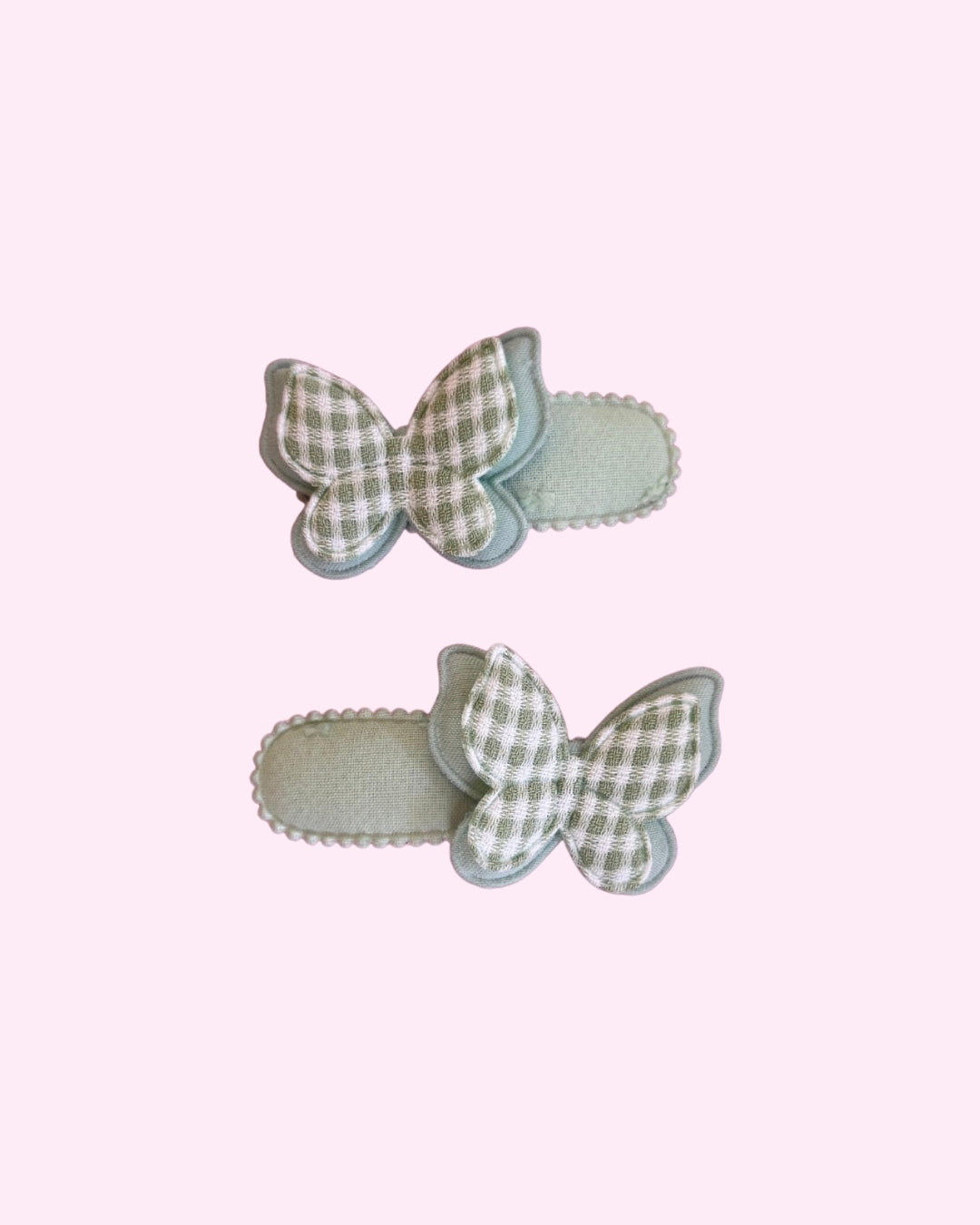 Set içeriğinde iki adet yeşil kelebekli toka bulunmaktadır.