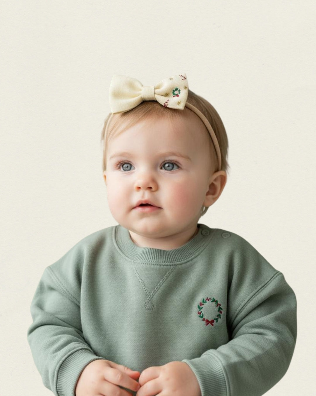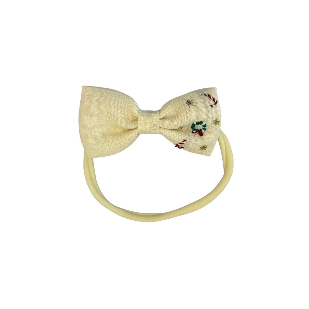 Yılbaşı nakışlı el yapımı bej bebek saç bandı.