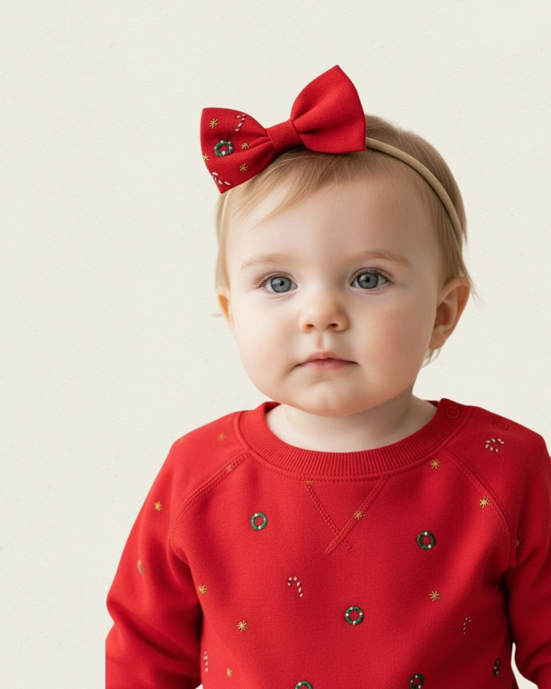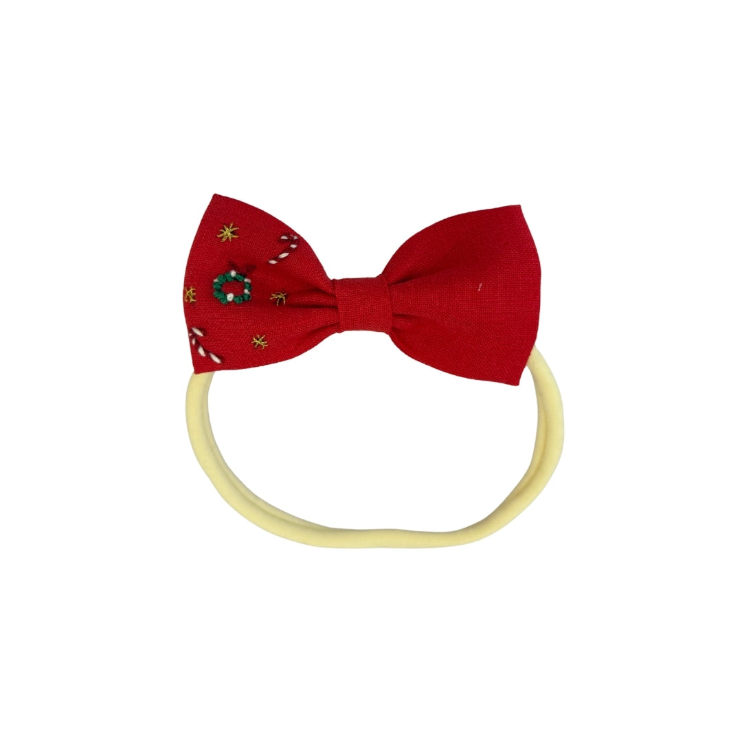 Yılbaşı nakışlı el yapımı kırmızı bebek saç bandı.