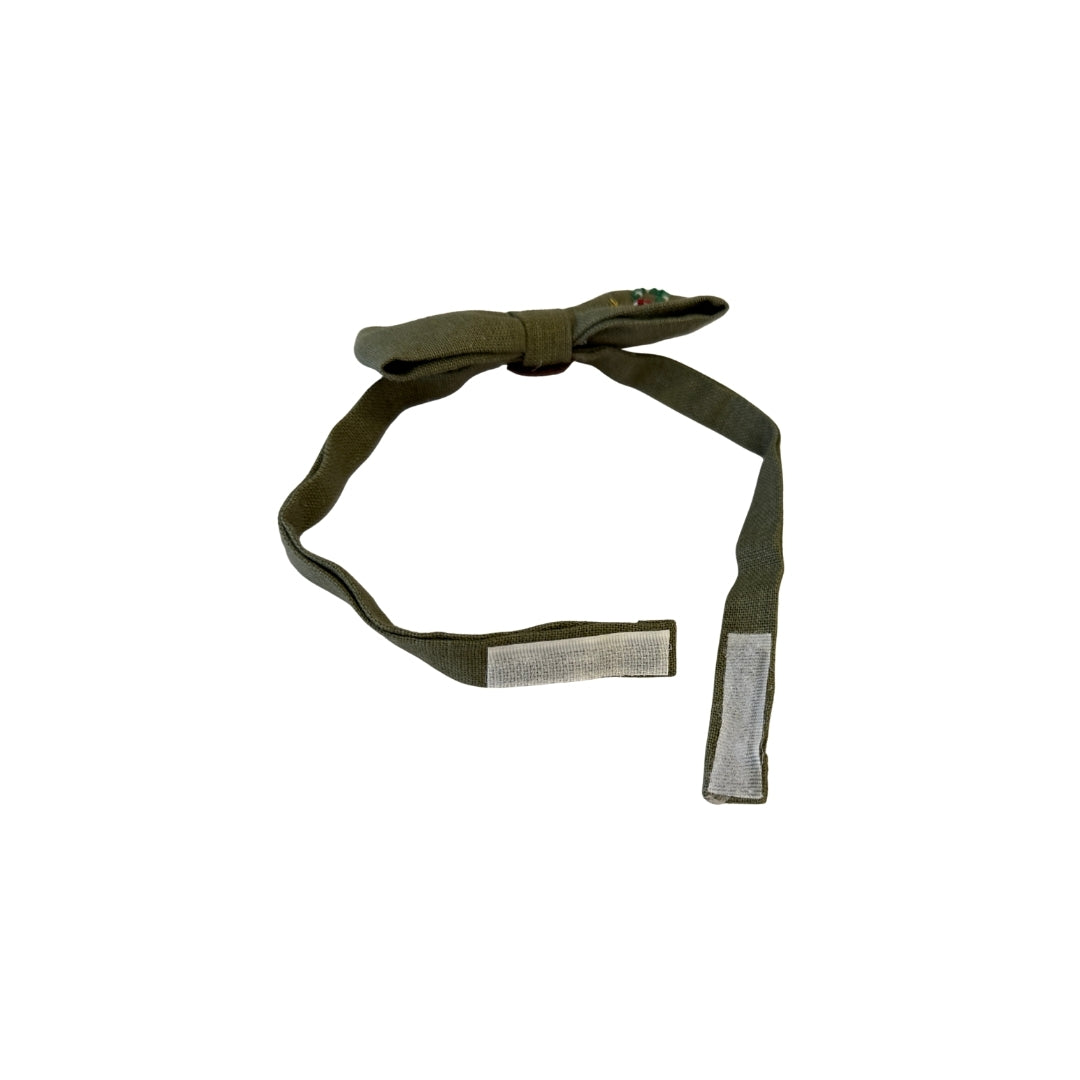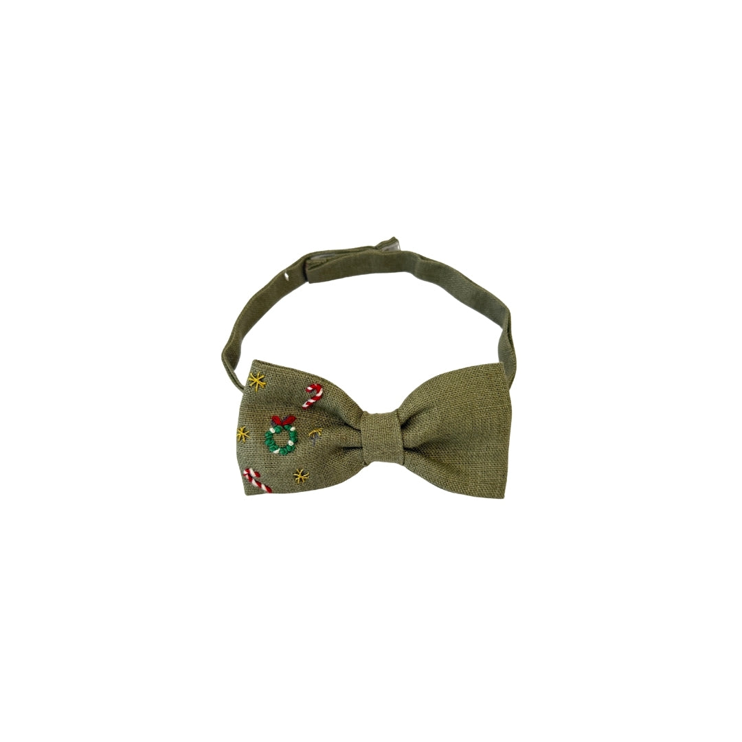 Yılbaşı nakışlı el yapımı yeşil bebek/çocuk papyonu.
